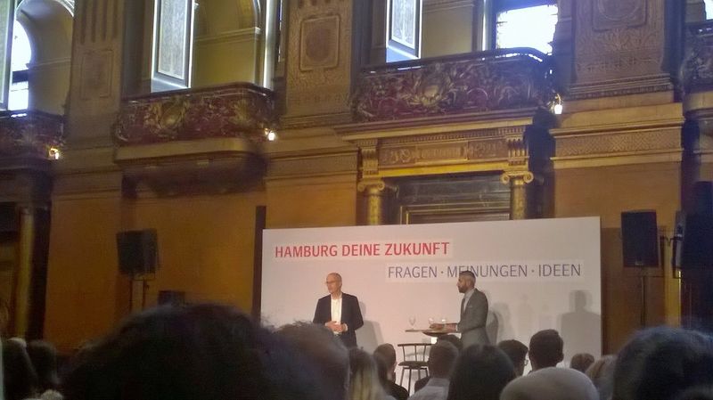 Um ihre Fragen an den Ersten Bürgermeister vorzutragen, sind am letzten Freitag im September mehr als 350 Schülerinnen und Schüler aus ganz Hamburg ins Rathaus eingeladen gewesen. Mit dabei war auch eine Delegation der Beruflichen Schule Hamburg-Harburg. Eingeteilt in drei Themenblöcke beantwortete der Bürgermeister während der zweistündigen Veranstaltung im großen Festsaal des Rathauses mehr als 60 Fragen. Die Themen reichten von Hamburger Maßnahmen gegen Klimawandel und Umweltverschmutzung, dem Zusammenleben in der Stadt über Sicherheit und Sauberkeit in der Stadt bis hin zu Preismodellen für den HVV.