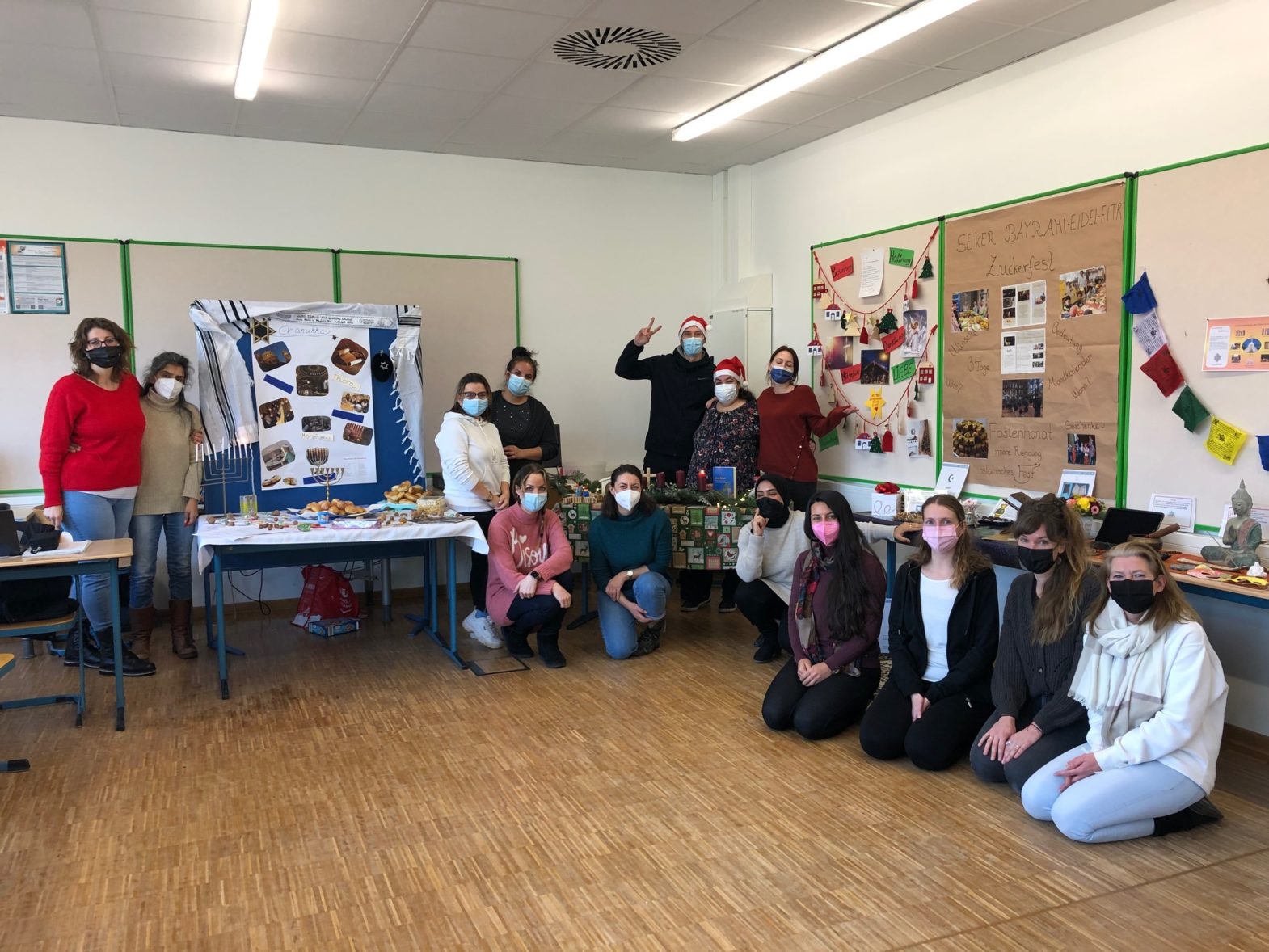 Wir haben das jüdische Fest Chanukka, das islamische Fest Zuckerfest, das christliche Fest Weihnachten und buddhistische Feiertage Vesakh eingehend untersucht. Wir teilten unsere Erkenntnisse darüber, „Wie diese Feiertage entstanden sind?“, „Was ihre Besonderheiten sind?“, „Wann und wie sie gefeiert werden?“ und vor allem, „Wie diese Feiertage in die pädagogische Arbeit mit Kindern, Jugendlichen und Familien integriert und gefeiert werden können?“.
