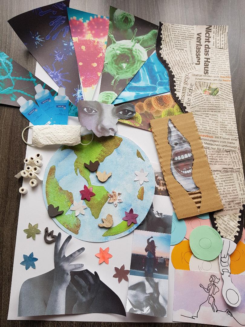 Mit dem was uns da neu umgibt, setzen sich die beiden Kunstkurse der Vorstufen des Beruflichen Gymnasiums künstlerisch auseinander, indem sie an einer Collage oder einem Objekt zum Thema „(Mein) Leben in Zeiten von Corona“ arbeiten.