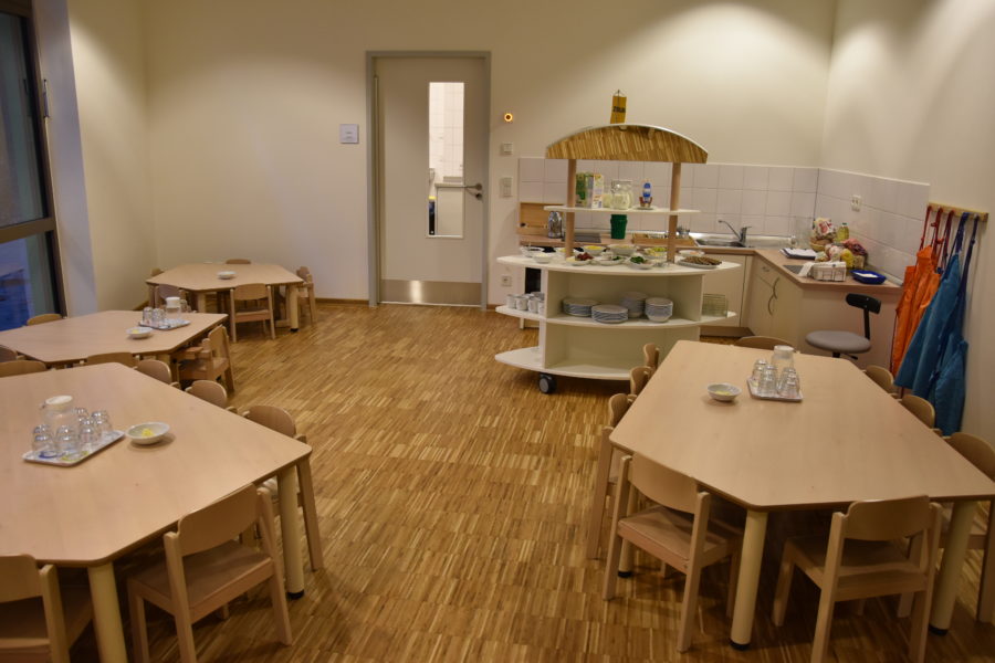 48 Kinder im Alter von ein bis sechs Jahren in drei Gruppen und acht pädagogische Fachkräfte und zwei Hauswirtschaftskräfte.